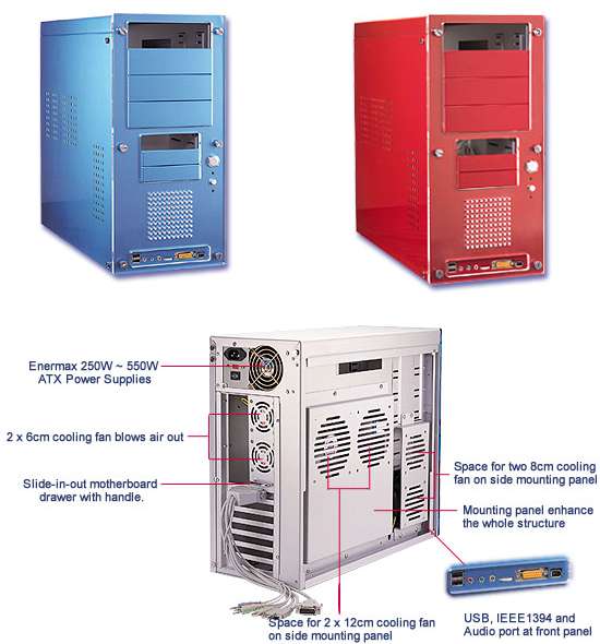 Netzteil, Voll-Alu, bis zu 9 Lüfter, Front: USB, Audio, FireWire (Bild) |